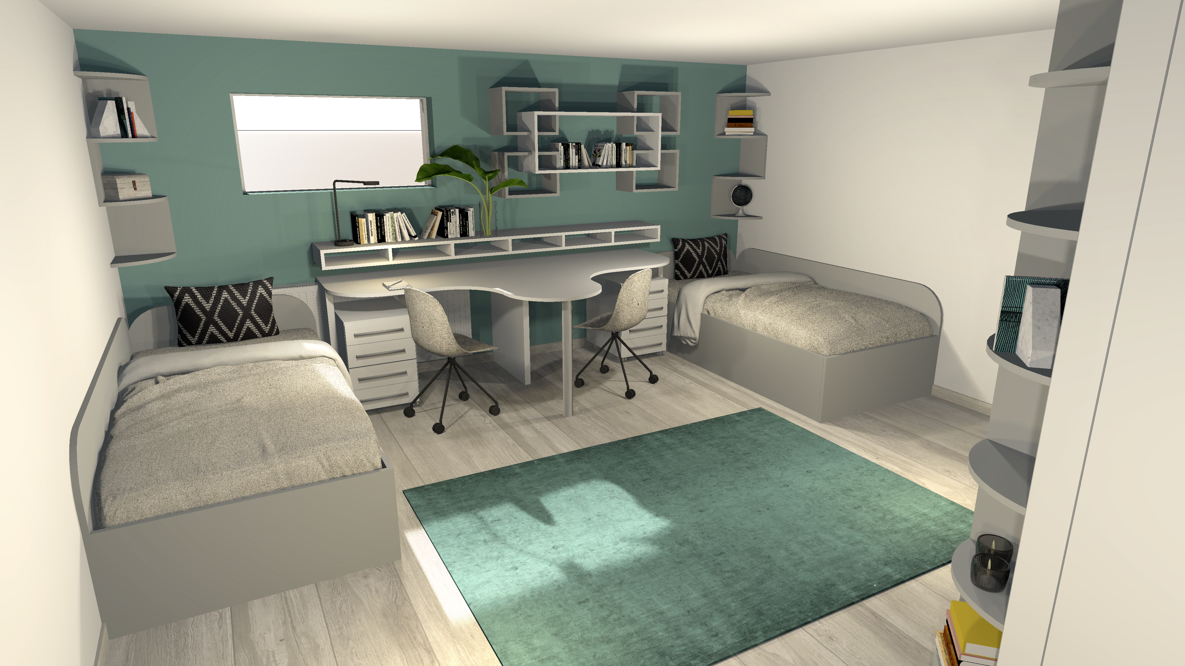 A gyerkőc birodalma legyen dinamikus, játékos és mindenképpen fontos a rengeteg pakolóhely. Viszont a sok színes holmi mellett a fal és a bútorok legyen semleges egyszínűek. A megfelelően kialakított szobában megvan a pihenés, tanulás, szórakozás jól elkülönített helye. Ami pedig a legfontosabb: gyorsan el lehessen pakolni 🙂