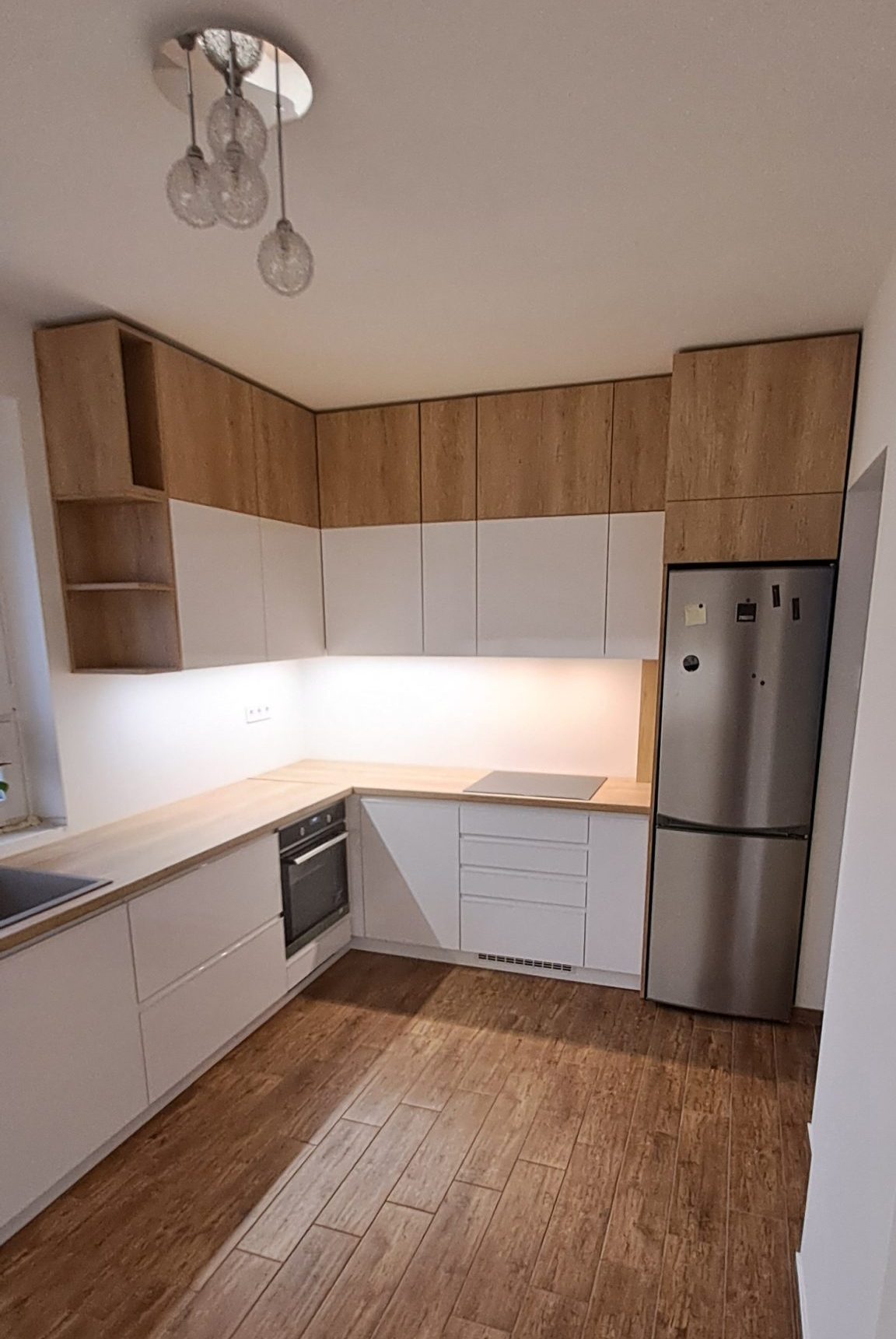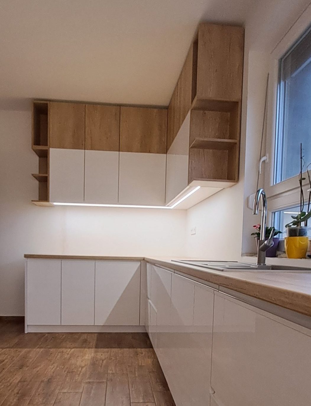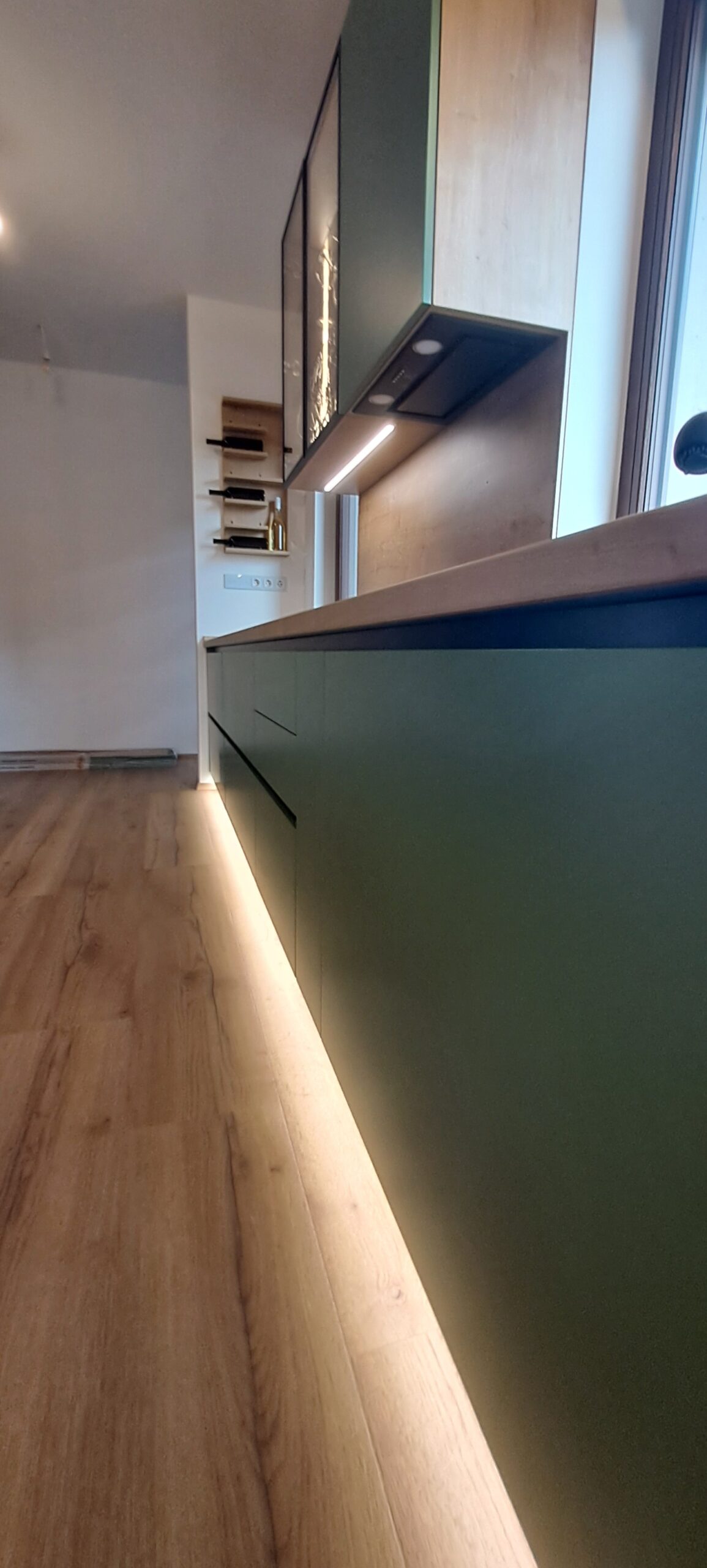 Amit a megrendelő egyszer megálmodott, abban segítünk, hogy ne csak álom maradjon. Egyedi elemekkel, színkombinációval és rejtett LED világítással alkottuk meg az egész nappalit meghatározó falburkolatot.